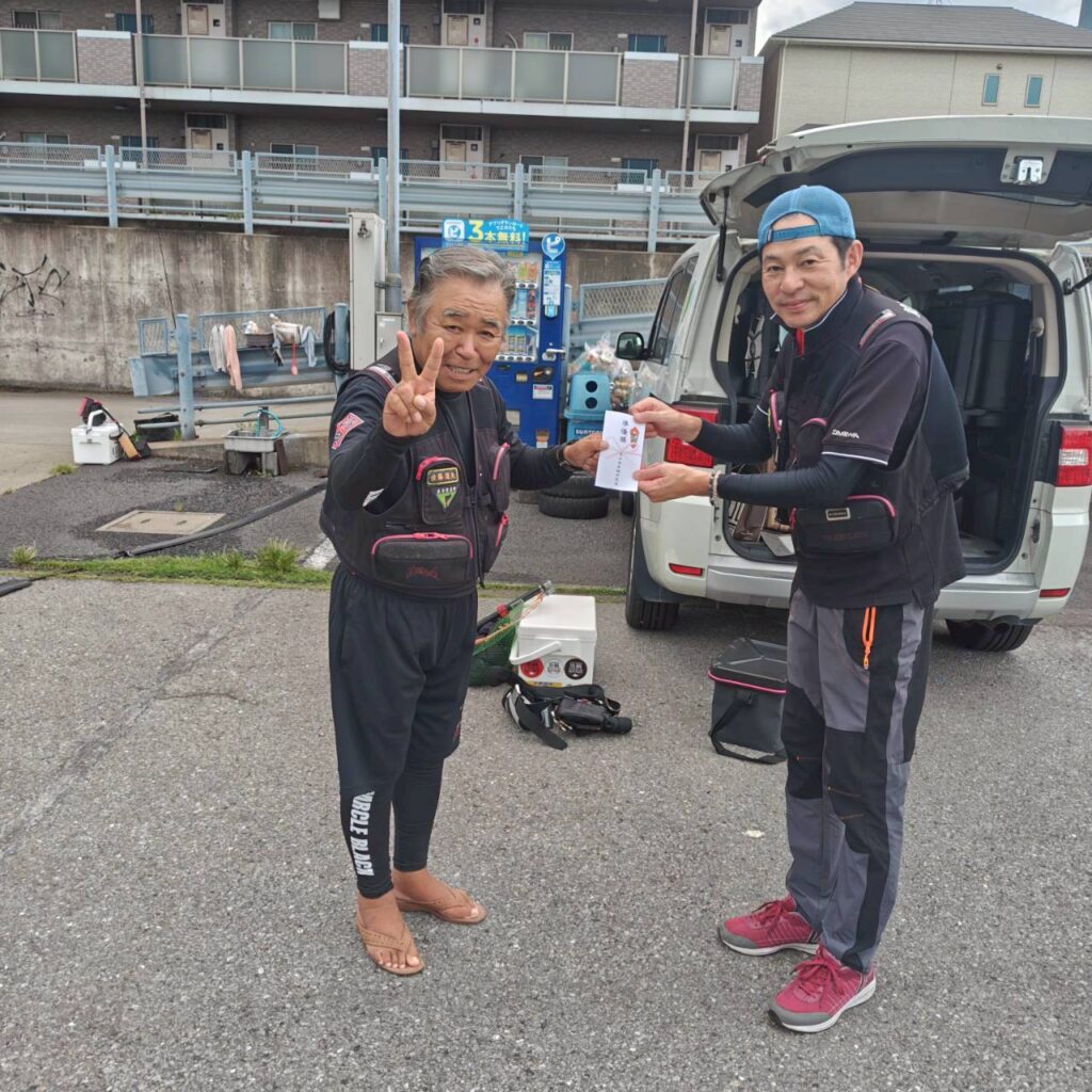 下道会長が42.5㎝を灯台側、佐藤顧問も大溝手前のインコースで40.8㎝と続く。