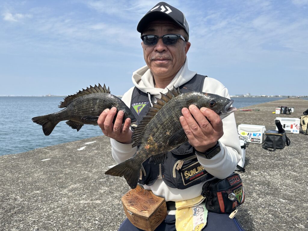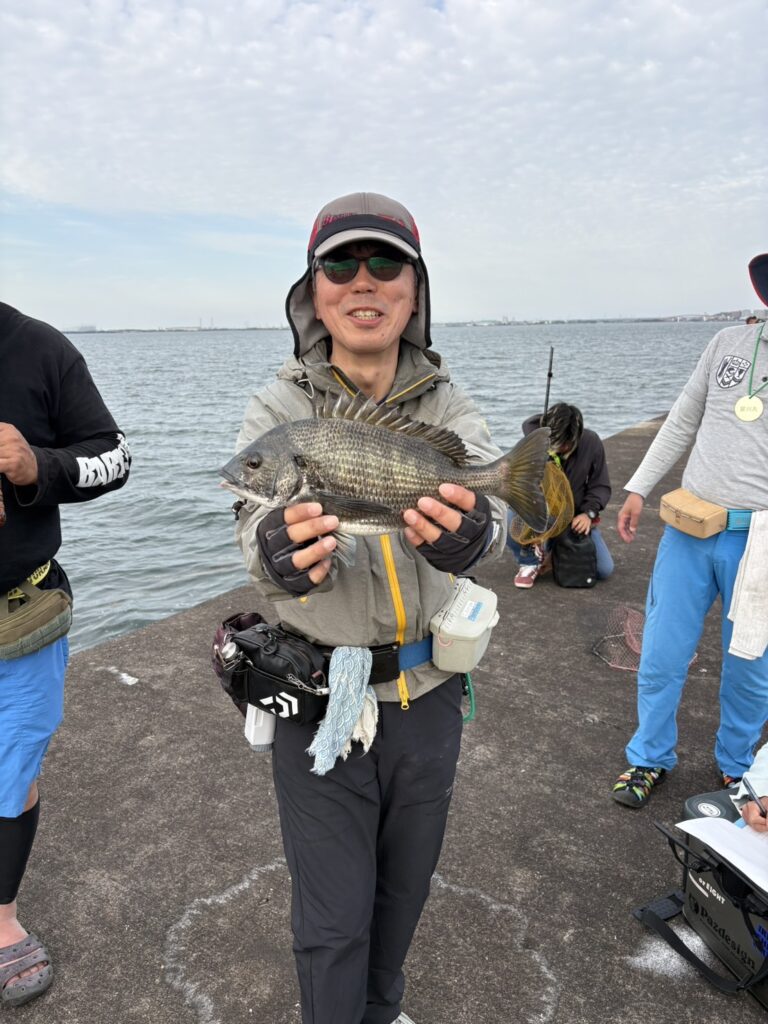 他の堤防でも上げ潮に乗って釣果が上がってくるようになり、大会中盤では肥後氏が2枚。