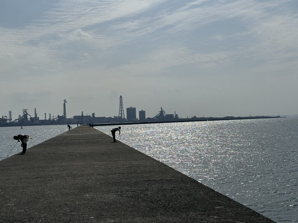 気まぐれな当日の風が木更津では不利な東の風になり、堤防全体でも釣果が一時的に止まってしまいます。